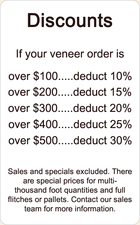 Our veneers are raw, unspliced, not backed or prefinished.