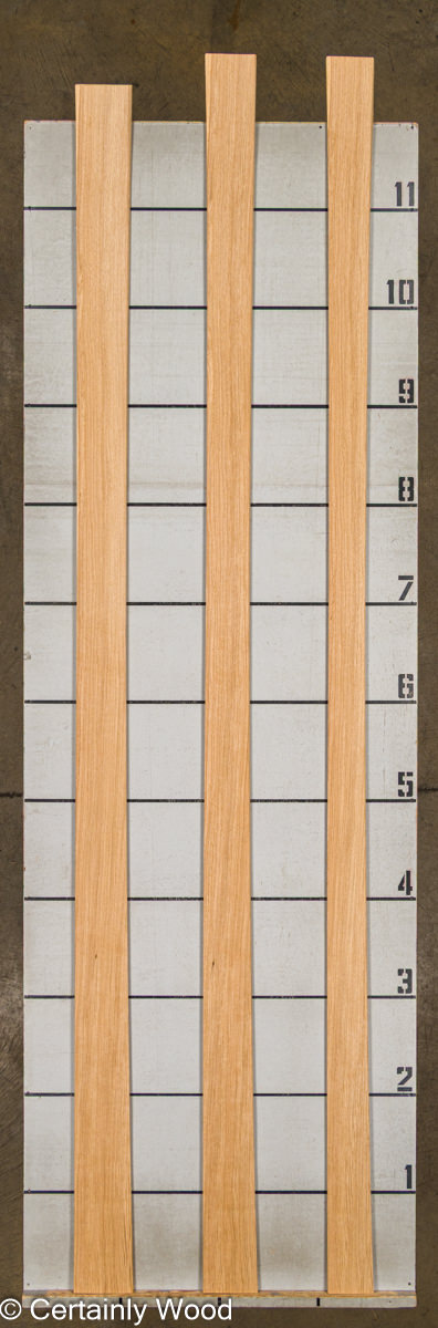 European rift white oak is generally lighter in color and has a tighter “comb” grain than domestic rift white oak.