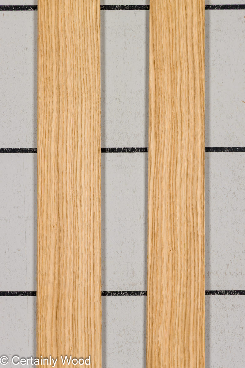 European rift white oak is generally lighter in color and has a tighter “comb” grain than domestic rift white oak.