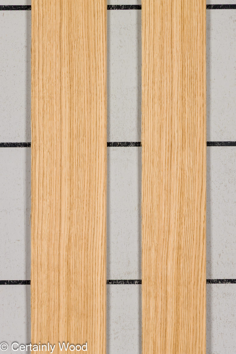 European rift white oak is generally lighter in color and has a tighter “comb” grain than domestic rift white oak.