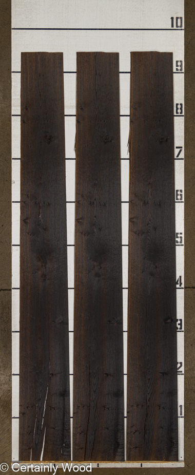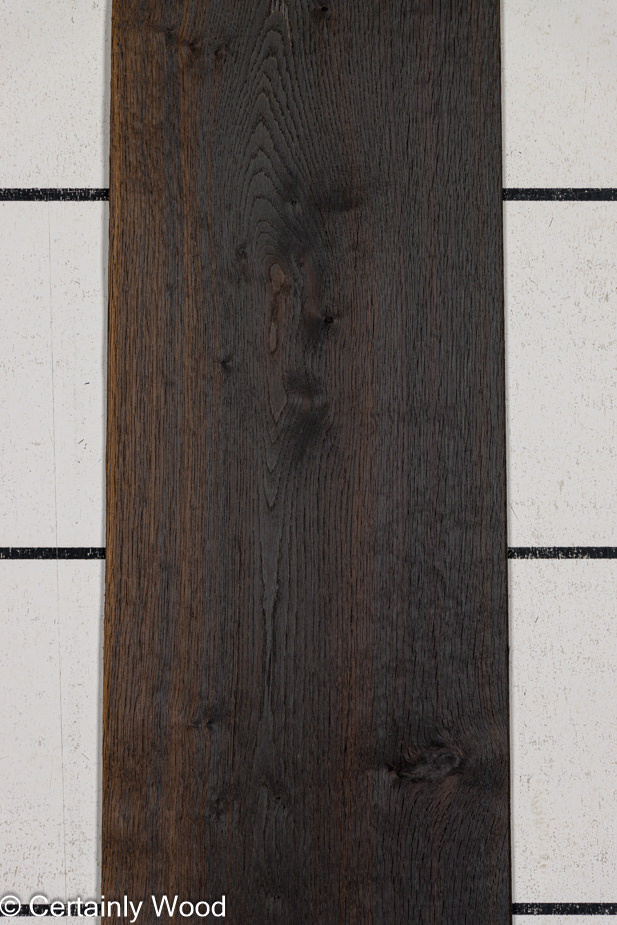 1/18 in. thick (1.4 mm) European “rustic” white oak that has been fumed or “aged” to look like lustrous bog oak.