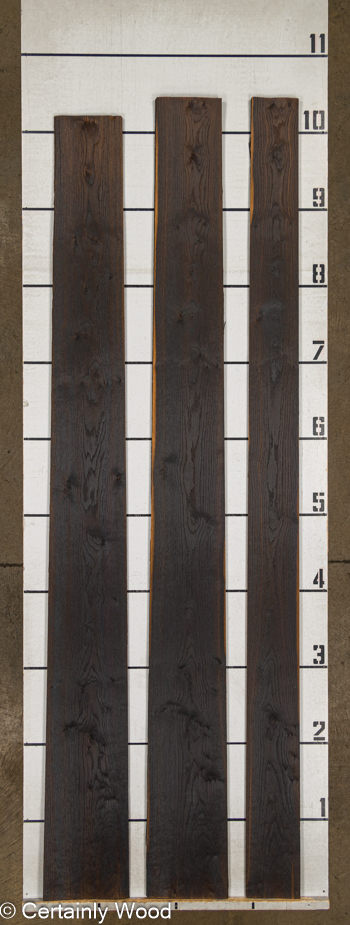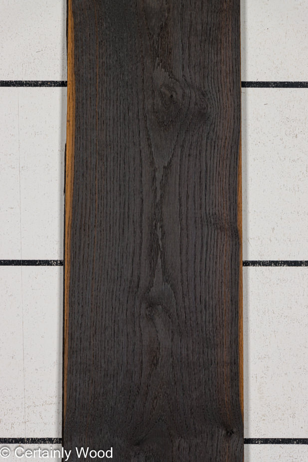 1/18 in. thick (1.4 mm) European “rustic” white oak that has been fumed or “aged” to look like lustrous bog oak.
