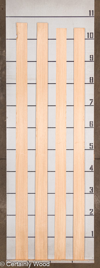 Tawny brown with flowing central cathedrals and straight edge grain sliced 1/28″ (0.9 mm) thick