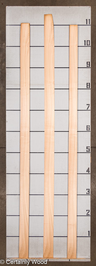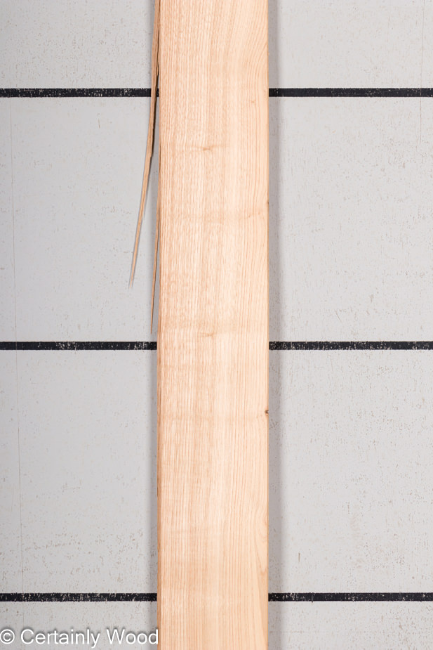 Tawny brown with flowing central cathedrals and straight edge grain sliced 1/28″ (0.9 mm) thick
