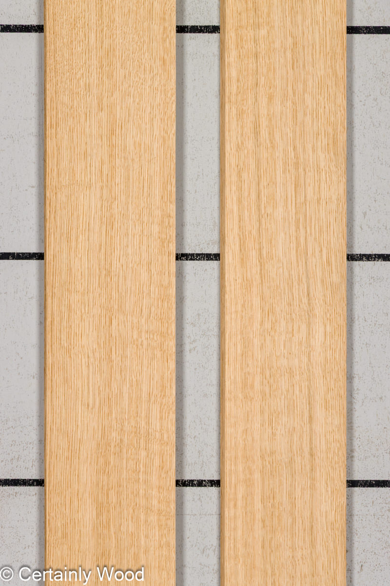 European rift white oak is generally lighter in color and has a tighter “comb” grain than domestic rift white oak.