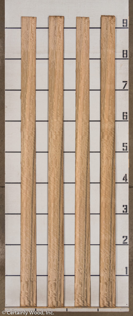 Australian Walnut, sometimes referred to as “Queensland Walnut,” is characterized by a soft wavy grain of dark browns, grayish-greens, or blackish streaks. Notable quarter-cut character marks reveal horizontal medullary rays extending across the grain, giving the appearance of a multi-dimensional finish. Strict supply regulations limit the availability of this popular veneer.