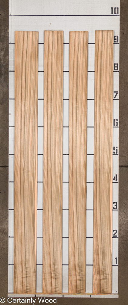 Australian Walnut, sometimes referred to as “Queensland Walnut,” is characterized by a soft wavy grain of dark browns, grayish-greens, or blackish streaks. Notable quarter-cut character marks reveal horizontal medullary rays extending across the grain, giving the appearance of a multi-dimensional finish. Strict supply regulations limit the availability of this popular veneer.