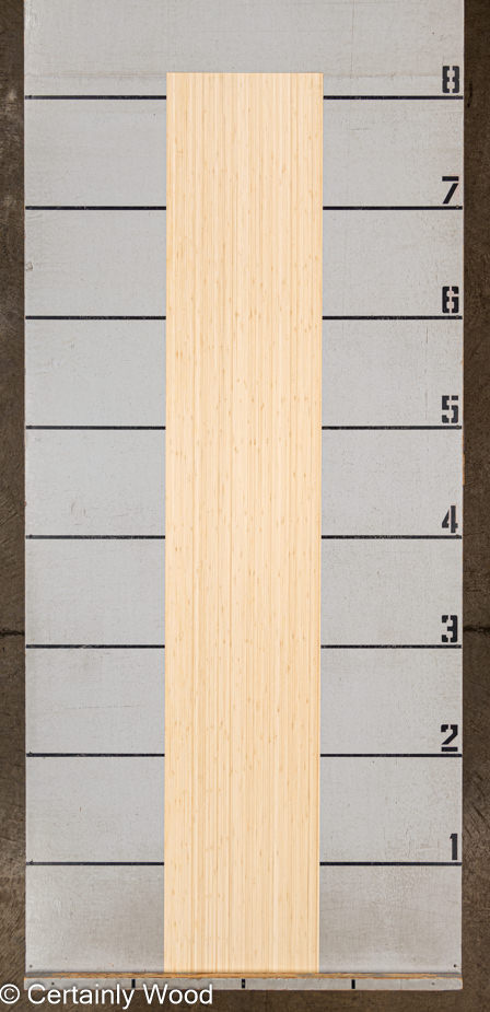 Real bamboo, light blond color with random knuckles throughout the sheets, narrow (3/8″ wide) and wide (3/4″ wide) bands