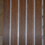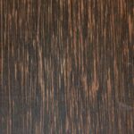1 mm Plain Press Black Palmwood. The latest development in black palmwood reminiscent of what was used during the Art Deco period. New methods of production have recreated the flat cut look that was only found from sawing the black palmwood cants, producing 2 pieces of 1.5 mm thick veneer every 30 minutes. The sheets of veneer are made in similar fashion to how the 2 mm stock is made and they are uniform in size to minimize waste. The prominent feature in this new look are the brown and black quills in the grain. 7.75″ wide x 86″ long. 142 sq. ft. Please call to confirm availability.