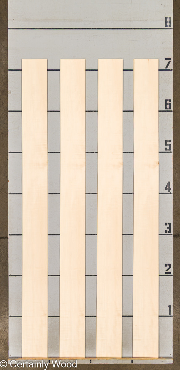 Light white to yellow color, flat cut and quartered. One of the lightest and brightest plain woods. Occasional minor pin knots are common, although we select flitches with as few as possible.