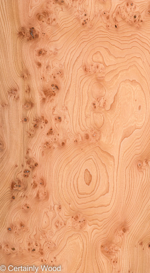 Pockets of burl scattered among swirling grain lines on a tan or light brown background