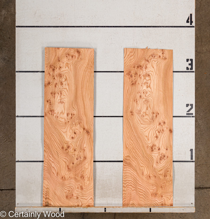 Pockets of burl scattered among swirling grain lines on a tan or light brown background