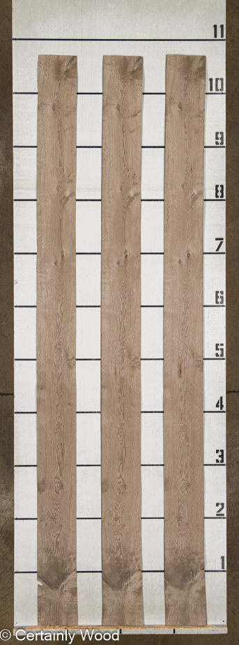 Regular thickness (~1/42″ thick); looks like aged, rustic exterior barn wood