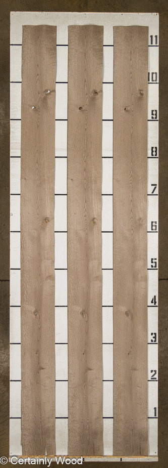 Regular thickness (~1/42″ thick); looks like aged, rustic exterior barn wood