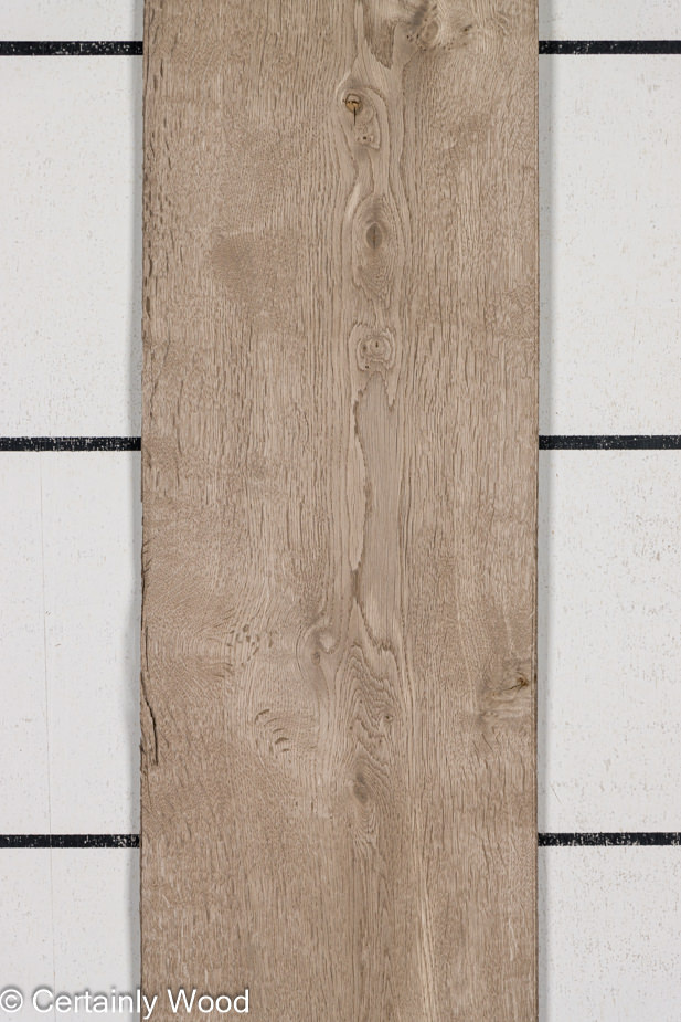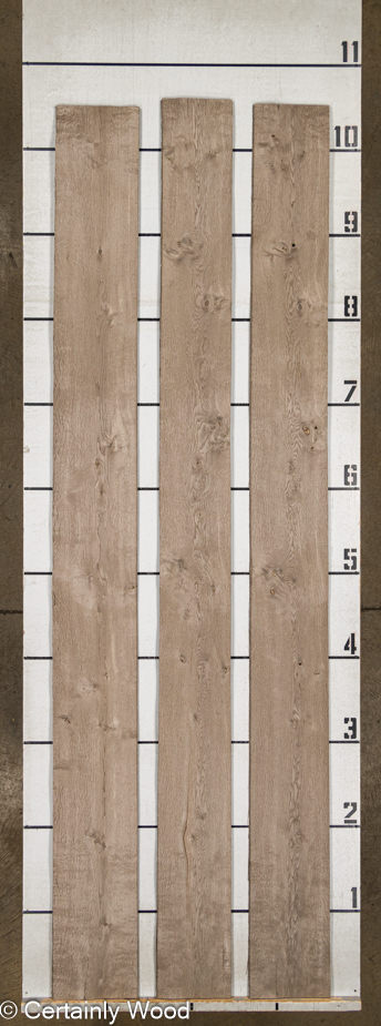 Regular thickness (~1/42″ thick); looks like aged, rustic exterior barn wood