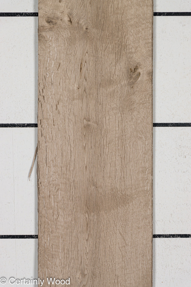 Regular thickness (~1/42″ thick); looks like aged, rustic exterior barn wood