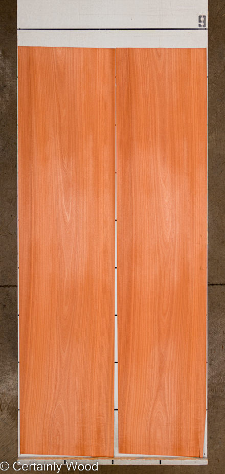 Flat Cut Makore, also known as African Cherry, is a stunning veneer of sleek heartwood saturated with bold orange-reddish and brown tones, occasionally complemented by golden accents. The flat cut reveals gentle cathedrals of uniformally colored grain, providing an elegant and refined appearance. Resembling American Cherry and African Mahogany, Makore serves as a prevalent alternative, offering abundance in yield and a remarkable durability.