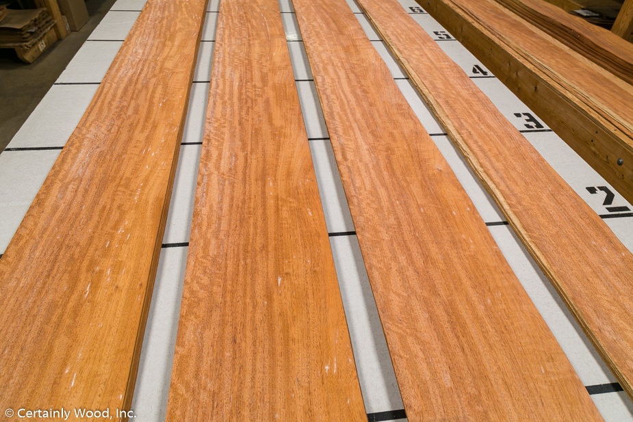 Originating from Southeast Asia, specifically the Philippines, Narra is a stunning veneer distinguished by its strikingly deep orange-red hue and durability.