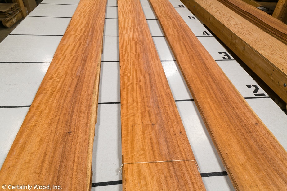 Originating from Southeast Asia, specifically the Philippines, Narra is a stunning veneer distinguished by its strikingly deep orange-red hue and durability.
