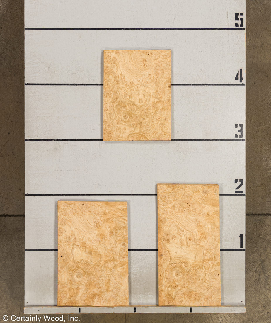 Biscuit color; conspicuous, open grain with clusters of burls