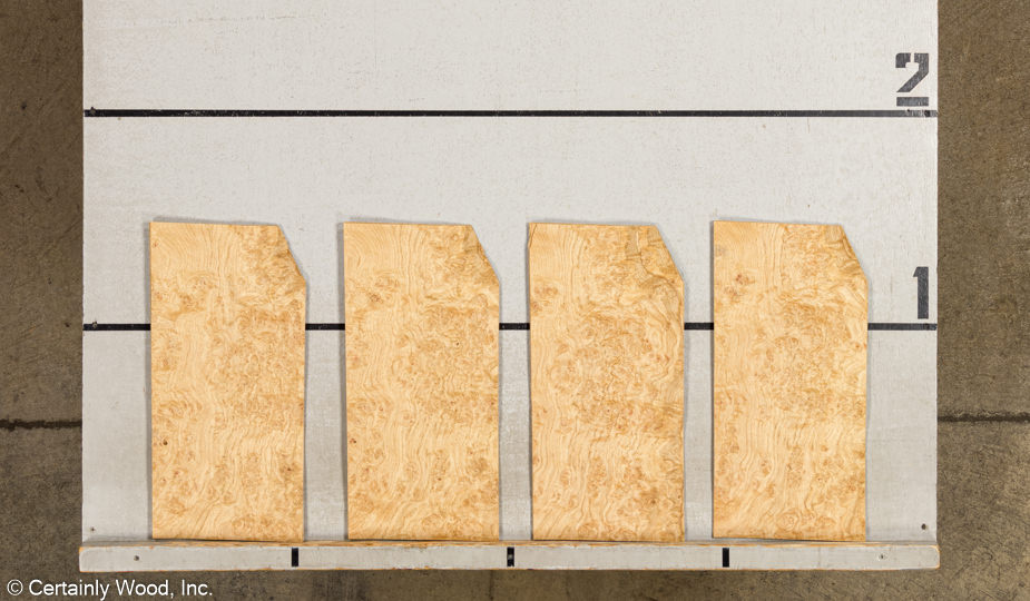 Biscuit color; conspicuous, open grain with clusters of burls