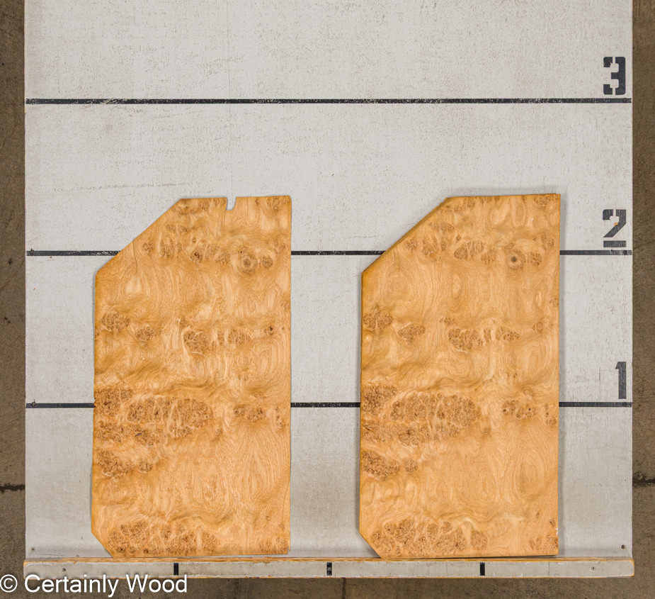 Biscuit color; conspicuous, open grain with clusters of burls