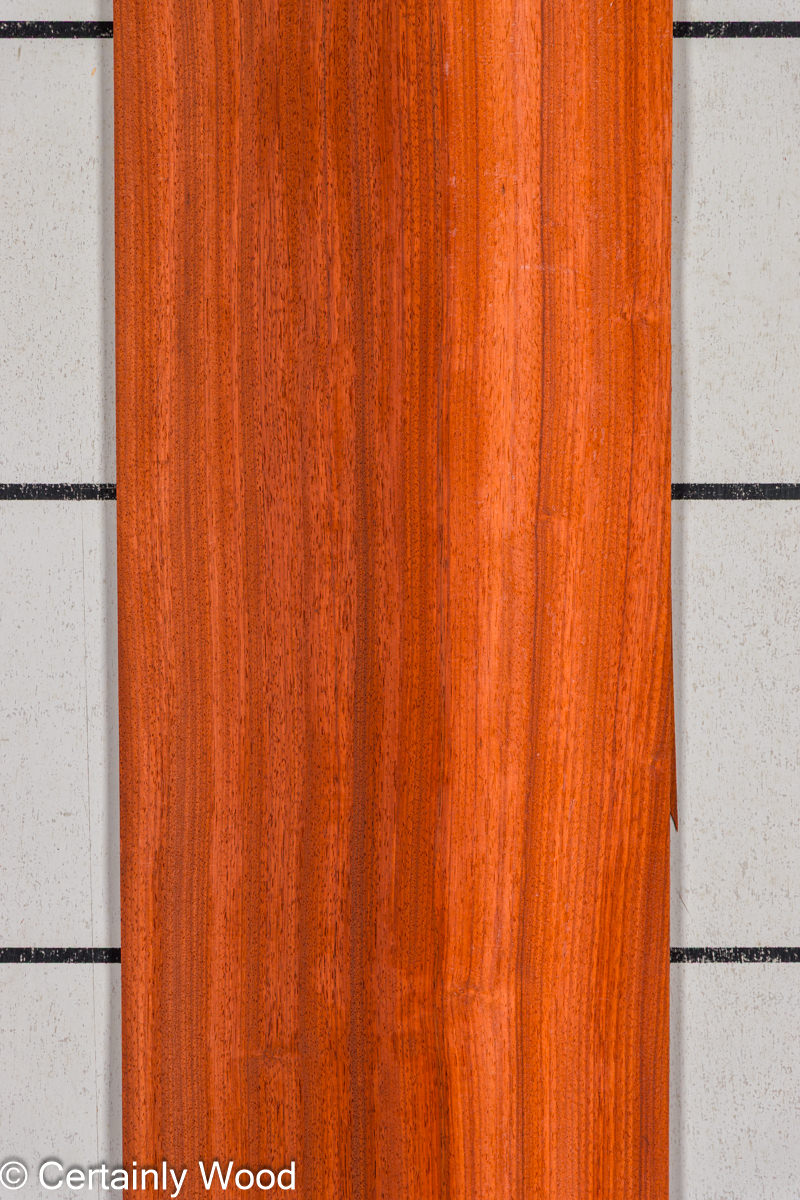 Padauk is a medium-density African hardwood veneer that possesses remarkable strength, a coarse texture, and a lustrous open grain. The combination of reddish brown heartwood and yellowish sapwood gives it a striking overall orange-red color. Padauk will gradually turn a sophisticated golden brown over time.