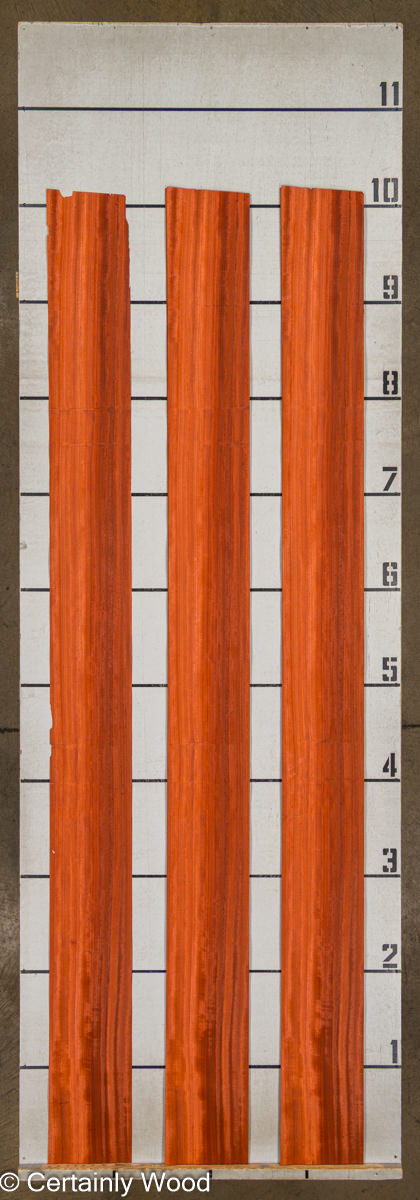 Padauk is a medium-density African hardwood veneer that possesses remarkable strength, a coarse texture, and a lustrous open grain. The combination of reddish brown heartwood and yellowish sapwood gives it a striking overall orange-red color. Padauk will gradually turn a sophisticated golden brown over time.