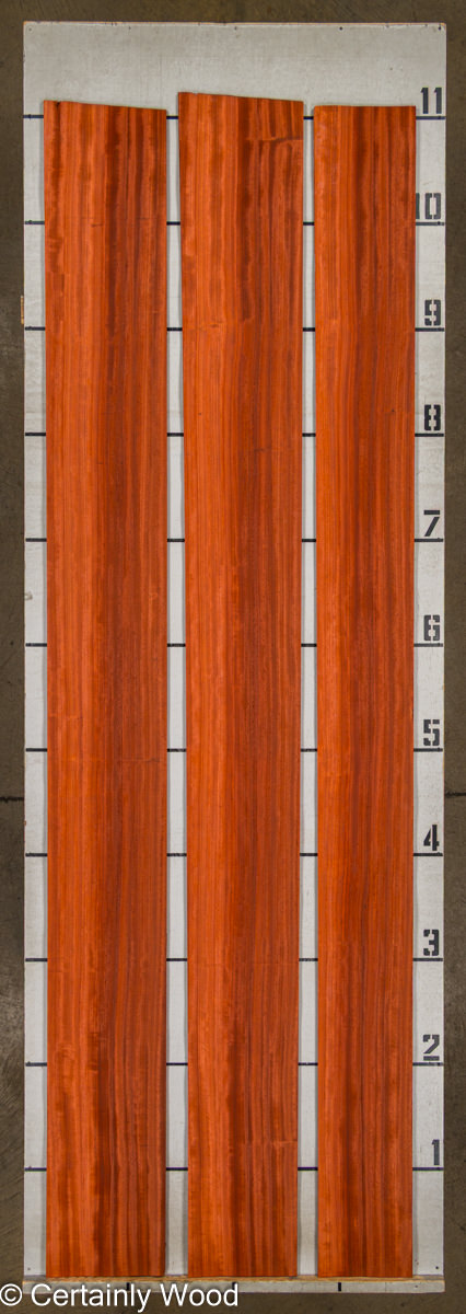 Padauk is a medium-density African hardwood veneer that possesses remarkable strength, a coarse texture, and a lustrous open grain. The combination of reddish brown heartwood and yellowish sapwood gives it a striking overall orange-red color. Padauk will gradually turn a sophisticated golden brown over time.
