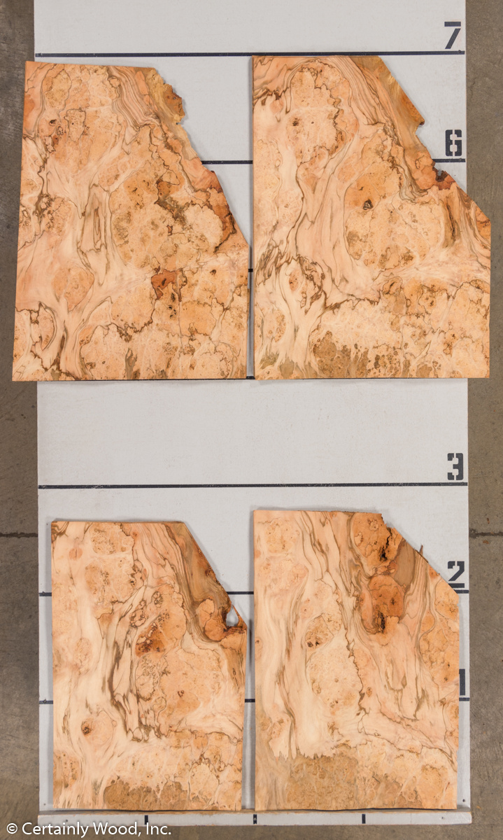 Tan, brown, gray and caramel swirls with pip centered burl eyes