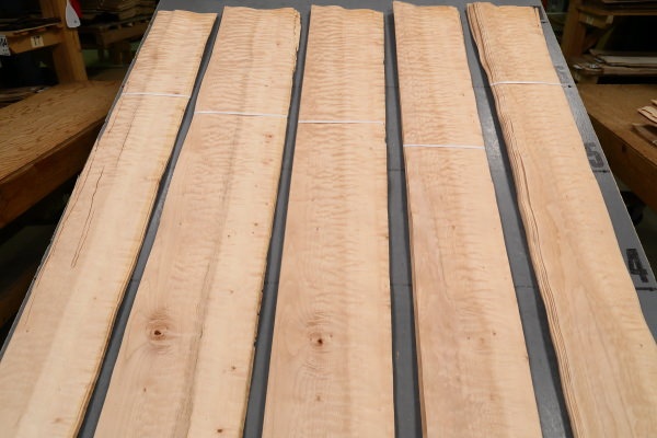 Extremely unique and one-of-a-kind. Quilted maple with random, dark brown bark inclusions. The perfect choice if you’re looking for a veneer that is both rustic and contemporary.