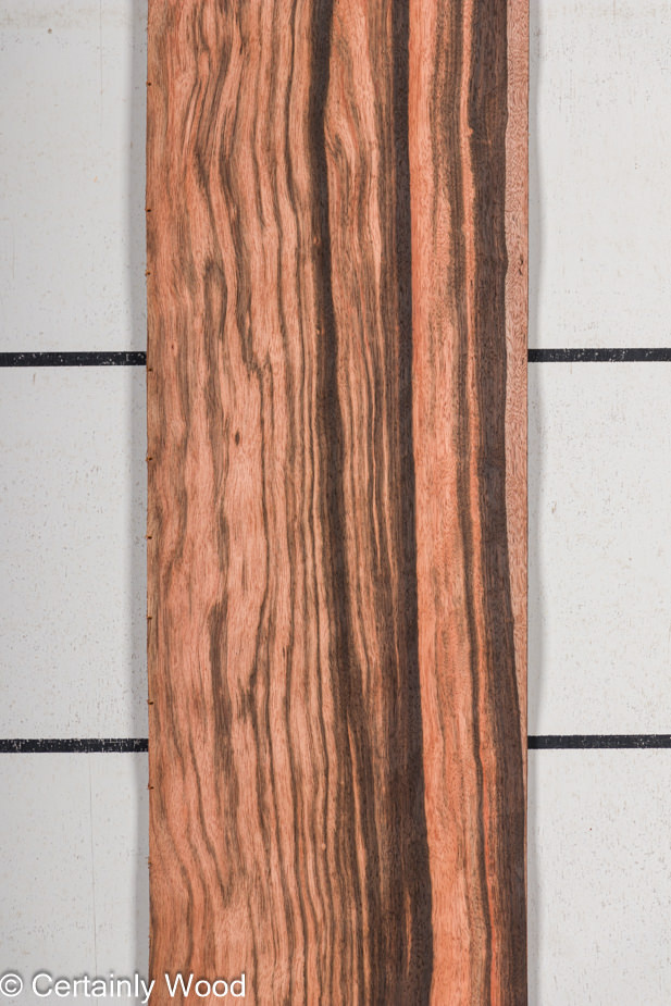 Although a different species than Macassar ebony, Amara ebony is very similar in appearance to Macassar ebony except the lighter stripes are more salmon colored.