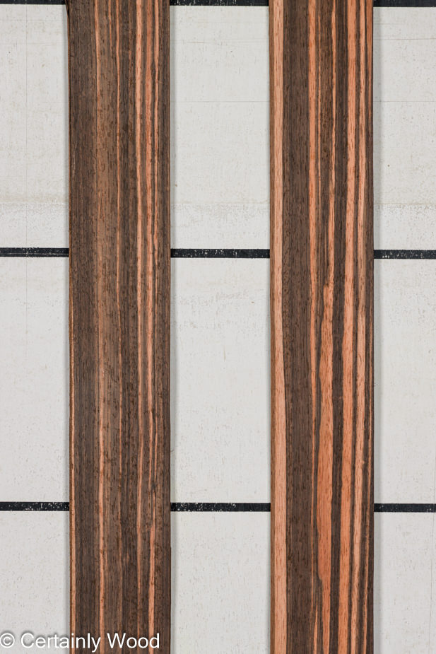 Although a different species than Macassar ebony, Amara ebony is very similar in appearance to Macassar ebony except the lighter stripes are more salmon colored.