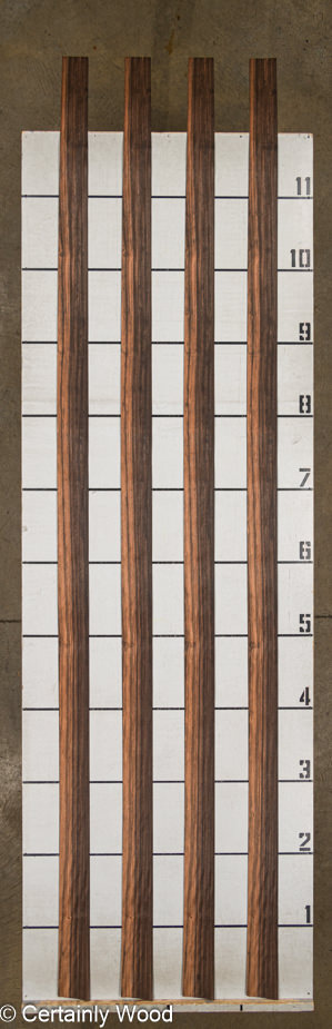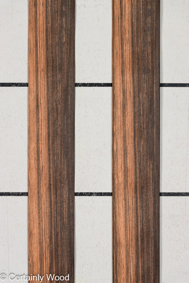 Although a different species than Macassar ebony, Amara ebony is very similar in appearance to Macassar ebony except the lighter stripes are more salmon colored.