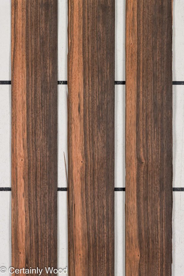 Although a different species than Macassar ebony, Amara ebony is very similar in appearance to Macassar ebony except the lighter stripes are more salmon colored.