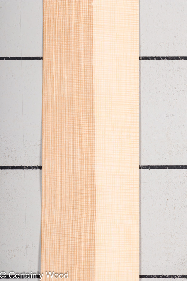 Quartered European ash with contrasting olive areas and curly figure