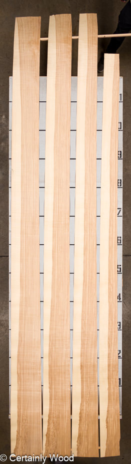 Quartered European ash with contrasting olive areas and curly figure