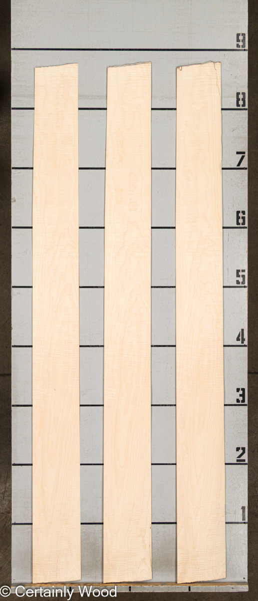 Curly figure appears to float over the loose, swirling grain pattern that rotary slicing produces.