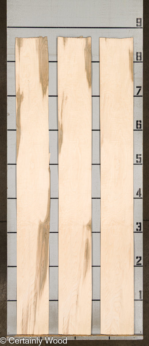Curly figure appears to float over the loose, swirling grain pattern that rotary slicing produces.