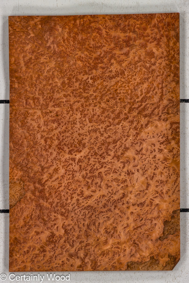 Deep red color combined with filament laced tight burl