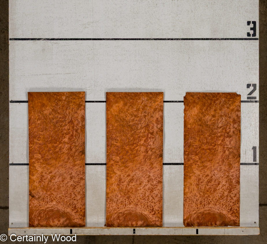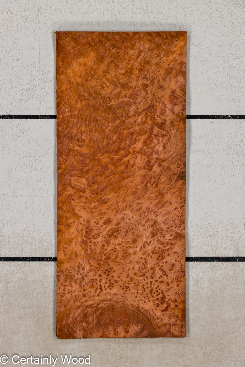 Deep red color combined with filament laced tight burl