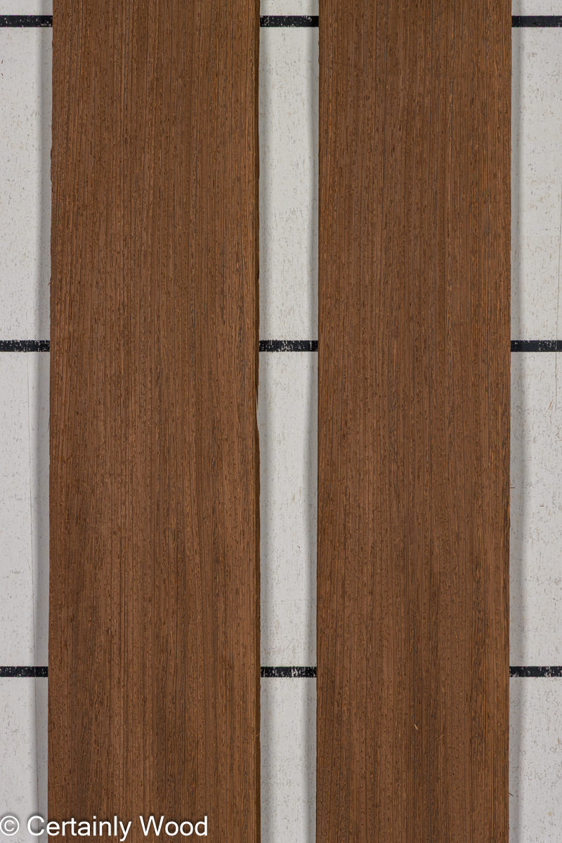 Wenge presents itself as a luxurious dark brown veneer with a coarse texture and intricate black veins. Its density, robustness, and stability make it a popular choice for architectural paneling and furniture due to its exceptional strength.