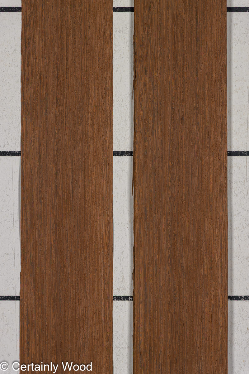 Wenge presents itself as a luxurious dark brown veneer with a coarse texture and intricate black veins. Its density, robustness, and stability make it a popular choice for architectural paneling and furniture due to its exceptional strength.