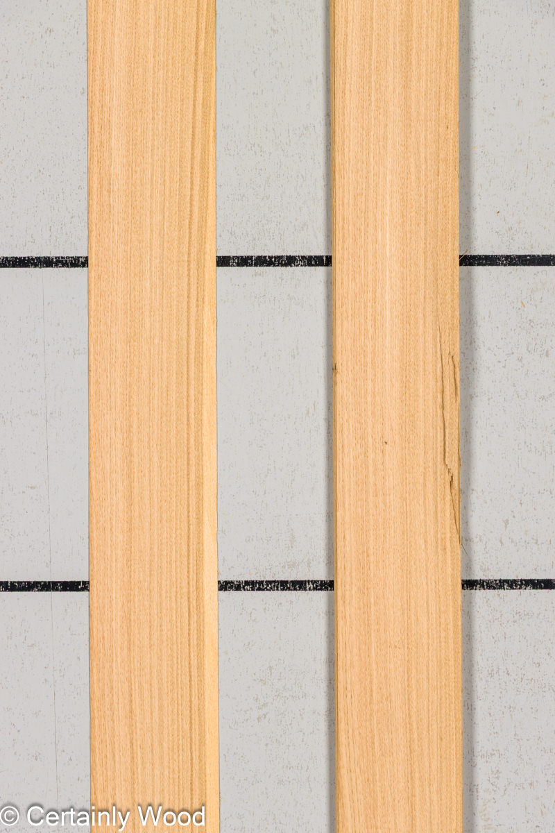 European rift white oak is generally lighter in color and has a tighter “comb” grain than domestic rift white oak.