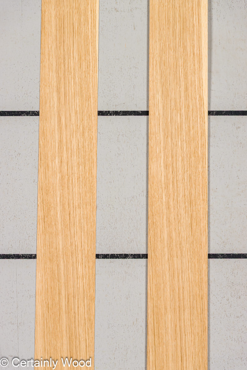 European rift white oak is generally lighter in color and has a tighter “comb” grain than domestic rift white oak.