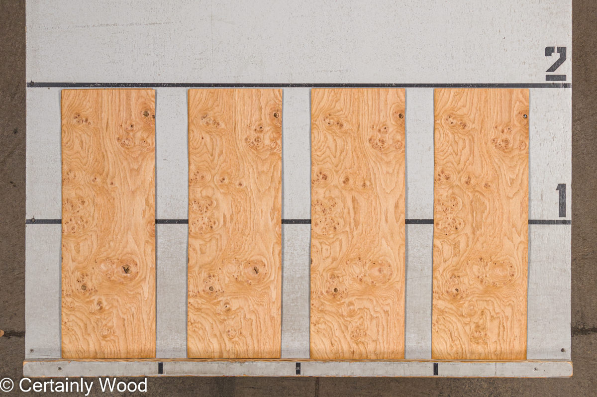Biscuit color; conspicuous, open grain with clusters of burls